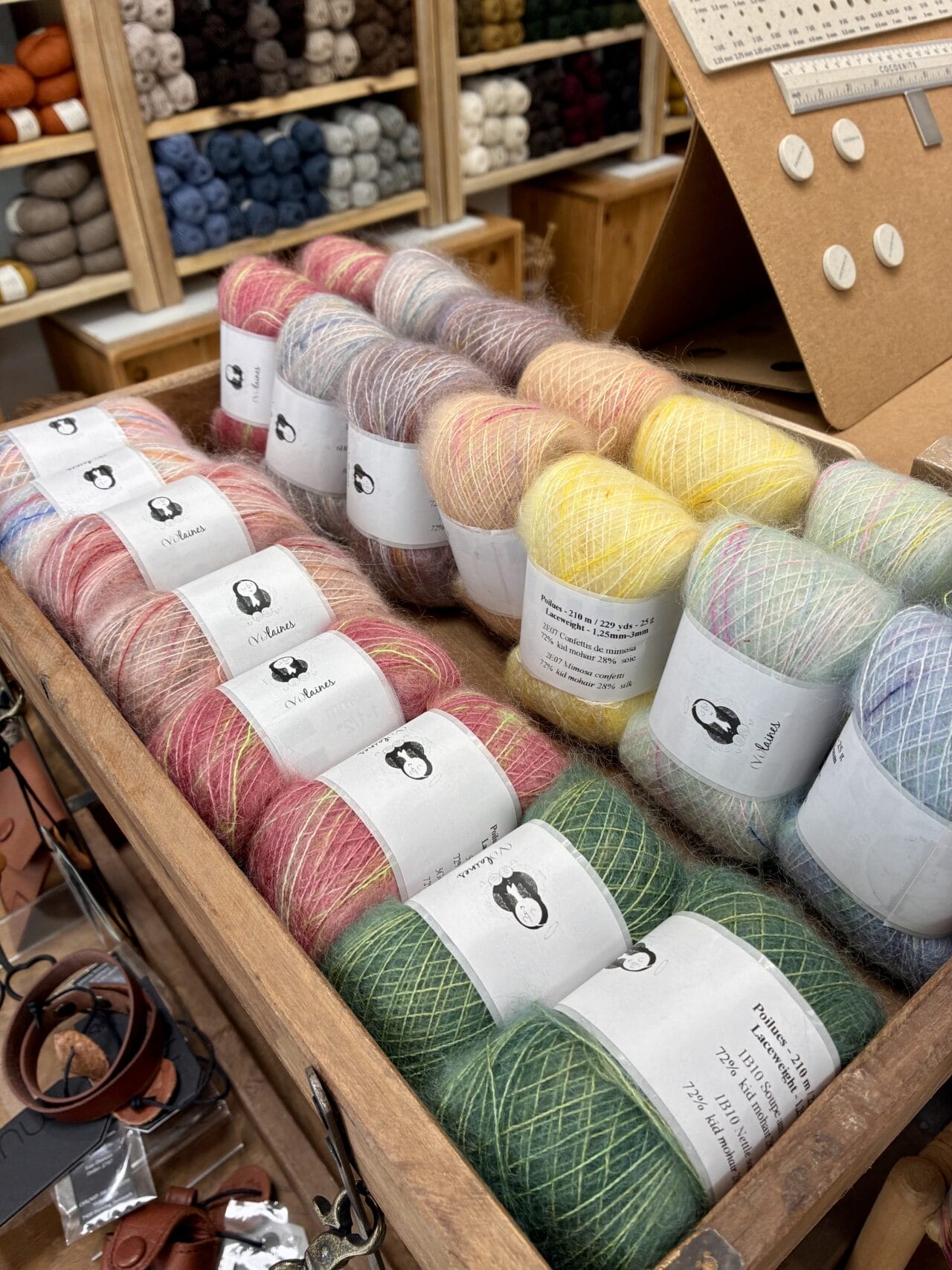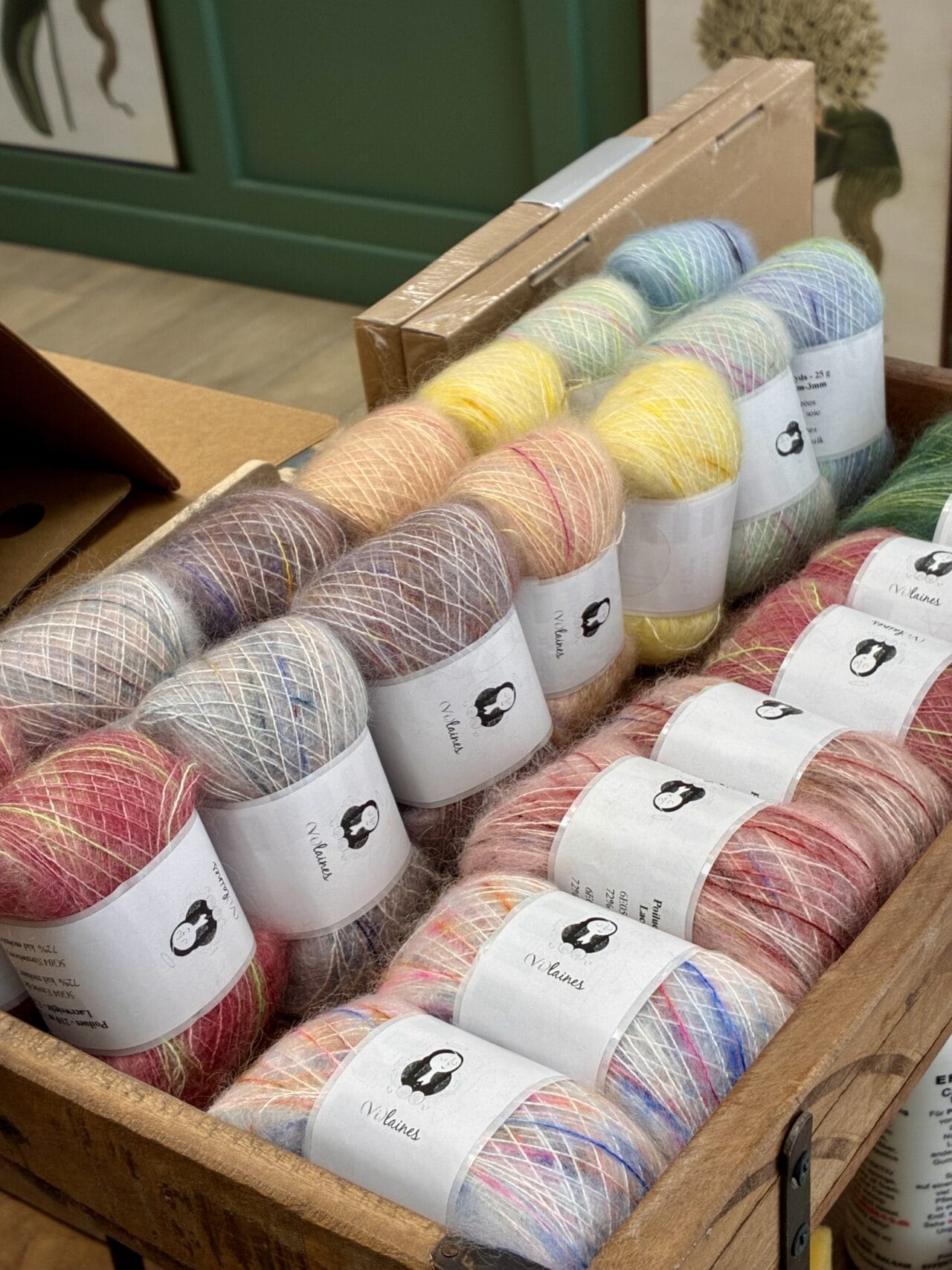 Estas preciosas boulettes de mohair de seda están teñidas a mano por Laine Vilaines.