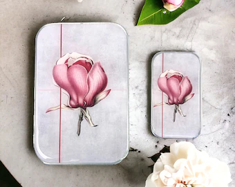 Las Cajitas Pink Magnolia Firefly Notes de aire vintage y exquisito diseño, son ideales para guardar accesorios tejeriles. Marcadores, alfileres, agujas laneras, etc, todo en orden en estas preciosas cajitas!
