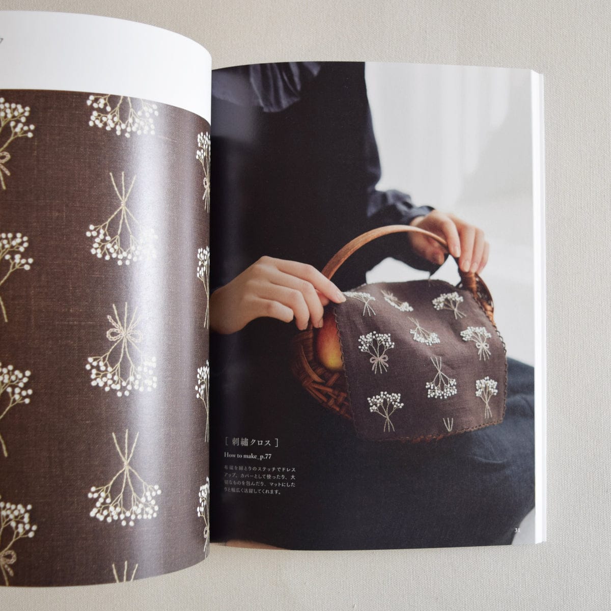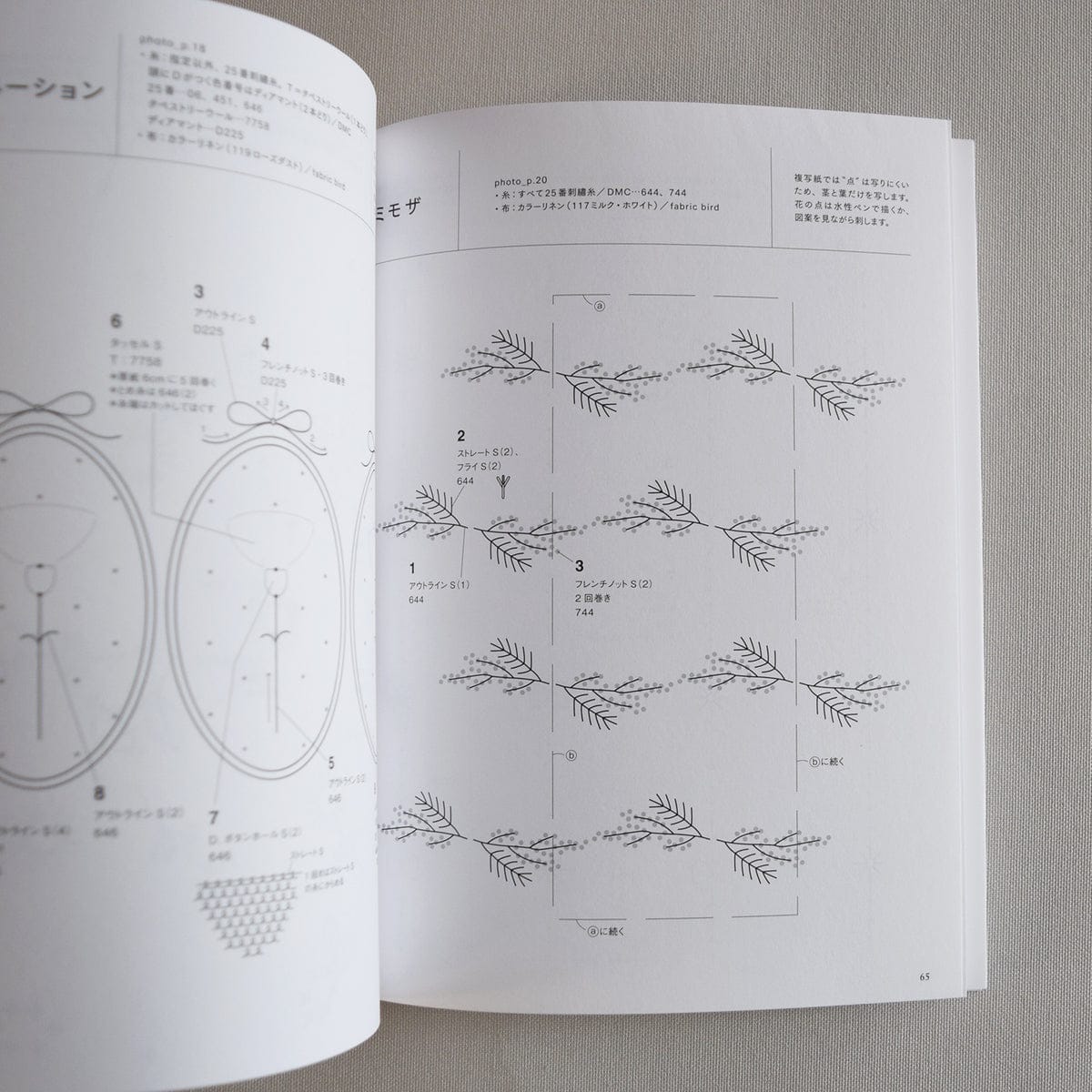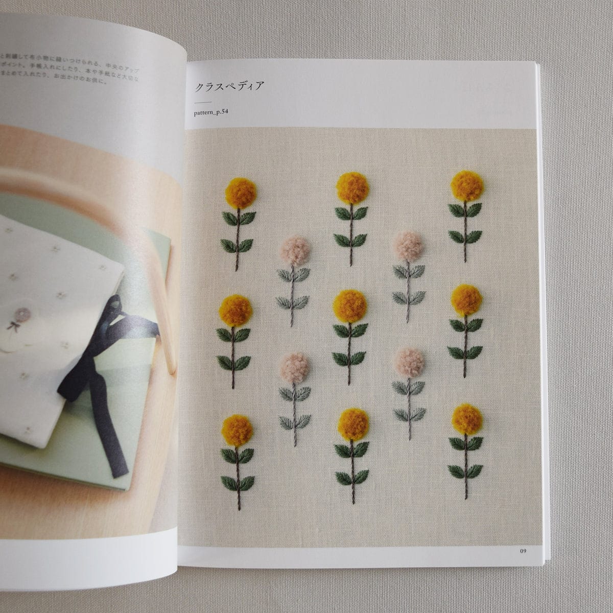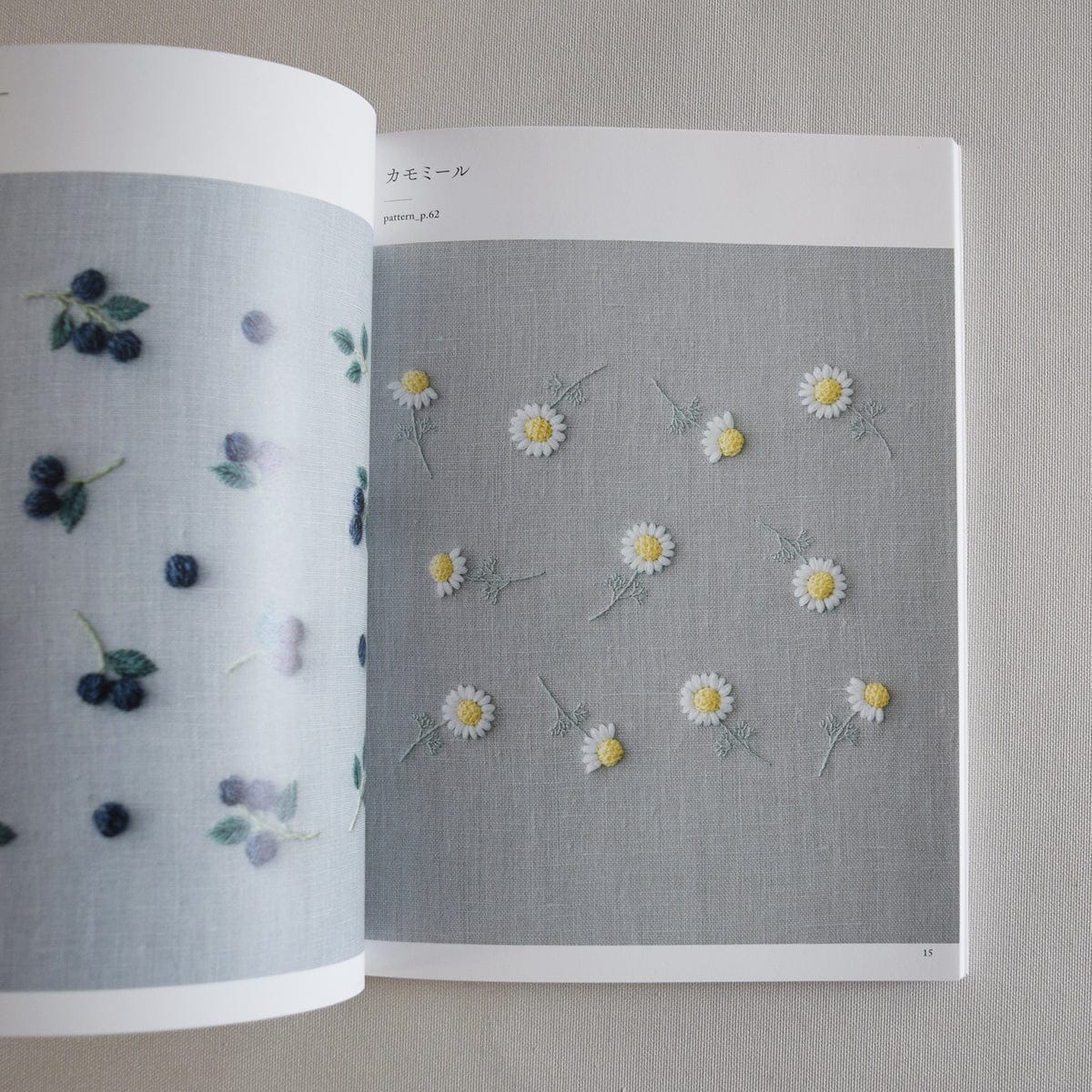 This embroidery piece features adorable floral motifs repeated across the fabric, creating a textile-like feel.