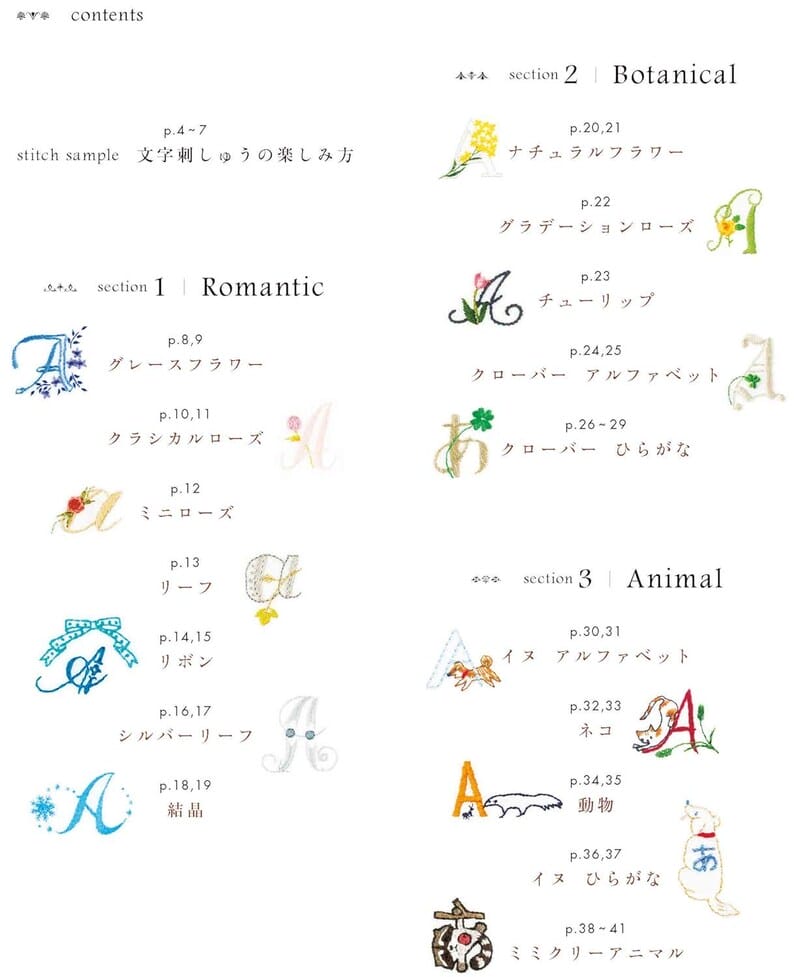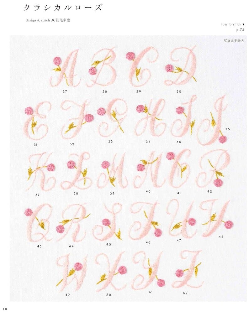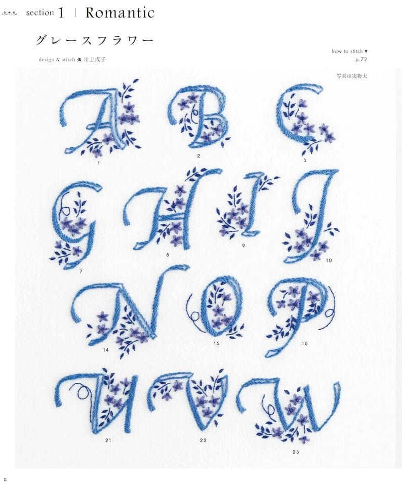Patrones de alfabetos para bordados: fuentes románticas y únicas: libro de manualidades japonesas